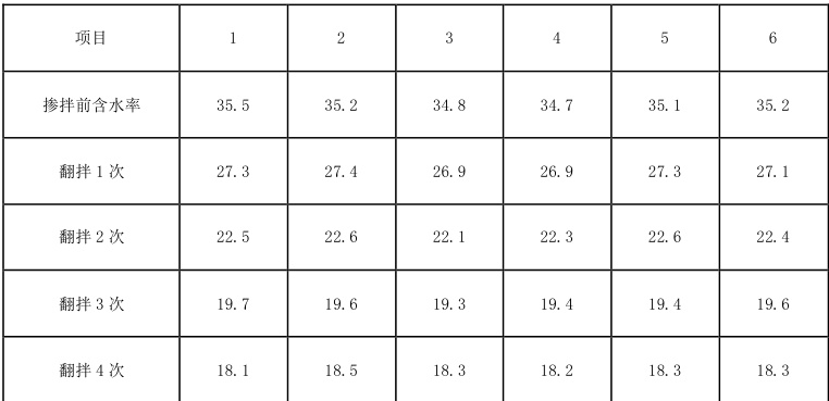 表1 掺拌5%生石灰的填料含水率变化统计表