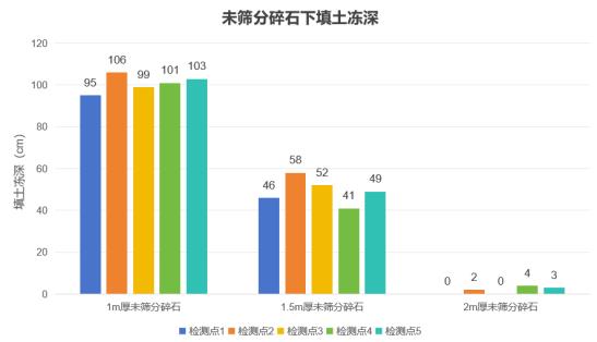 由上表可知,在填土顶铺设未筛分碎石,可降低填土的冻深。通过这一手段,我们确保了表层填土的固结沉降在寒冷的冬季不会因孔隙水的冻结而受阻,不仅保障了固结沉降所需的时间,而且促进了固结沉降过程的顺利进行。