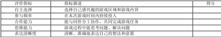 在区域游戏化教学模式下,幼儿是核心参与者,他们对自身的认知能力、思维能力和社交能力拥有最直接的发言权。因此,在进行“游戏化”教学评价时,幼儿应被视为关键的评价对象,并且要重视他们的主观能动性。然而,现实中,由于班级规模较小和教师评价观念滞后等因素,许多幼儿园教师在执行游戏化教学评价时,往往忽视了幼儿的主观参与,将幼儿视为评价的对象而非主体。这种做法主要表现在三个方面:首先,评价过于依赖自下而上的结构化方式,重视结果而轻视过程;其次,未充分考虑幼儿在评价中的作用,将幼儿视为被动的评价对象,忽略了他们在游戏中的认知处理和情感体验;第三,未关注幼儿在游戏中的行为表现,未能从幼儿的语言、表情和动作中捕捉到有关其发展的有价值信息。缺乏幼儿参与的评价,不仅限制了教师获取评价资料的途径,也妨碍了教师树立正确的评价理念和构建积极的休闲教育环境[2]。