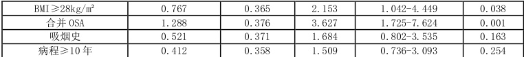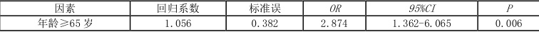 表2 夜间高血压影响因素的多因素Logistic 回归分析表