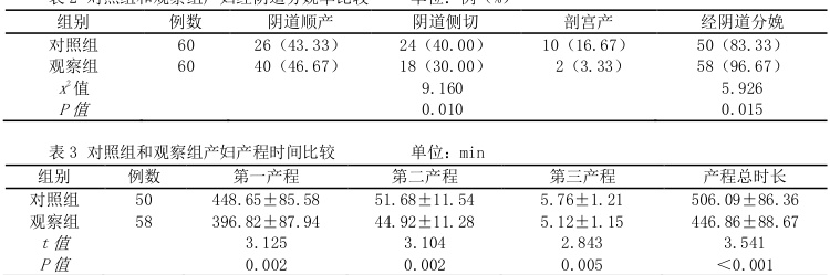 表2 对照组和观察组产妇经阴道分娩率比较 单位:例(%)