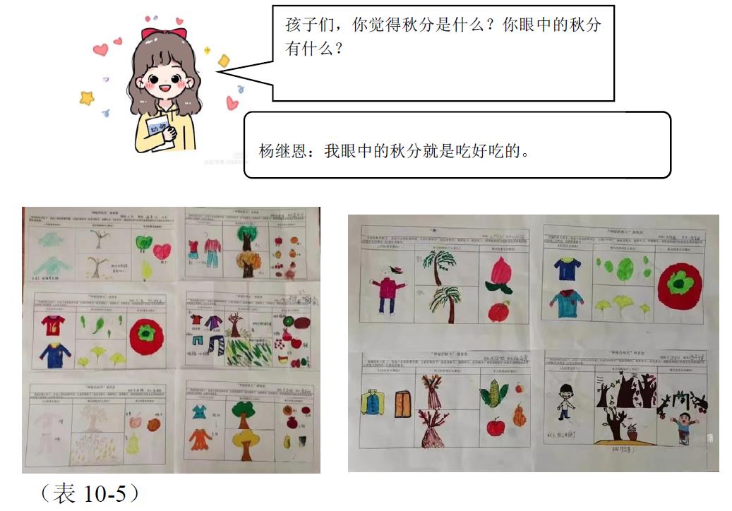 例如以“秋分棋”作为主题开展的教学活动。利用家长资源,在秋分日带鸡蛋来幼儿园,进行秋分竖蛋的活动。利用环境资源,布置班级秋分环境,用环境来激发幼儿兴趣。利用园所资源中的滨江人家,开展吃秋菜的活动…….这些活动都是利用资源来开展的。