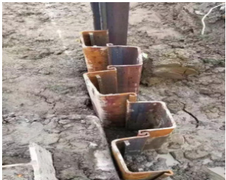 施工工程前要先铺设地下柱架和梁架构造,在此基础上再进行插入钢板桩施工工作。先期的围堰是在顶部位置进行第一层 350×350mm 大型 H 形钢管桩的插入作业,其插入深度为地平面下 1.5m 。其余的层间距位置处设置的围堰皆采用 350×350mmH 形铁件制作围堰,间距为 2.5m, 。