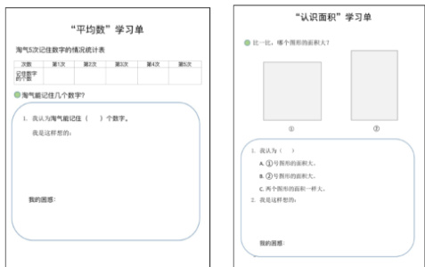 教学中,教师将课本中的教材巧妙变身为学材——学习单,并以学习单为抓手,因“生“制宜,为学生提供思维发散的空间,触发他们对知识本质内涵的思考与探索。学生借助学习单在“独立探究——同伴互助——集体交流”的过程中达到对知识的自主建构。学生单的巧妙设计与运用,既搭建了展示学生思维的舞台,又丰富了解决问题的策略,逐渐触及知识的本质。借助学习单的自主探究,把“学”的主阵地还给学生,让学生学得主动、学得充分,学生的素养才能真正得到发展。