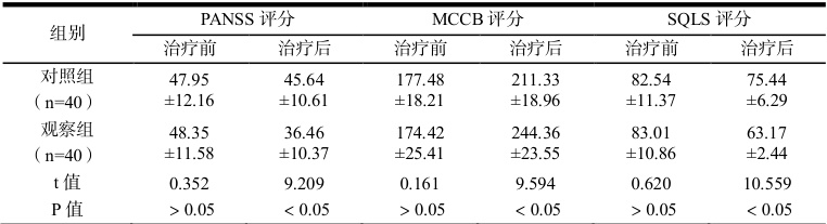 本研究表明,认知行为治疗(CBT)在精神科临床中效果显著。观察组联合 CBT 后,PANSS 评分降低,提示症状严重程度减轻;MCCB 评分提升,反映认知功能改善;SQLS 评分下降,表明生活质量提高,且各项评分均明显优于对照组