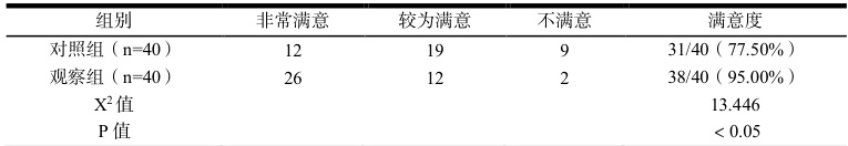 观察组患者的治疗满意度(95.00%)明显高于对照组(77.50%),差异显著(P<0.05),见表 2。