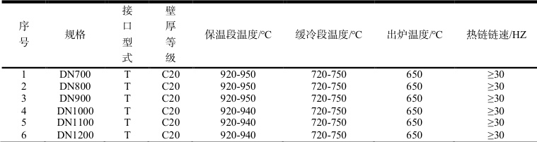 2.3.3 壁厚控制。生产 DN1000-1200 管型 C20、K7 等薄壁管时,承插口 500mm 内壁厚控制在标准壁厚以上,整体轴向壁厚极差控制在 2.5mm⊩ ,环向壁厚极差控制在 0.5mm 内。