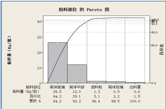 图 1 筒壁粘料量排列图