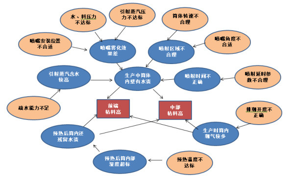 图 2 筒壁粘料因果图