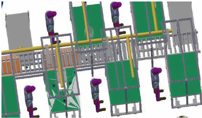 单元电池装配线主要由人工操作台和无动力输送线组成,总尺寸为 5829mm×