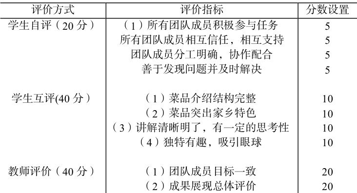 教师既是任务的参与者也是任务的监控者。教师布置任务点后,给学生充分的时间去探索,放手让学生自主完成任务,给予适当的监督,激发学生的创新意识及创新能力,激发学生的想象力,对于学生提出的疑问进行启发性回答,引导学生思考和分析。最后,对整个任务效果进行评价。在“任务导向”的驱动下,每组学生为设计一份宴席菜单共同努力,学生从被动接收知识变为主动探索学习,学生可以发挥主观能动性。学生在完成任务过程中思维互相碰撞,互相交流想法,成员之间团结协作,可以让学生更加深刻体会到合作的力量。