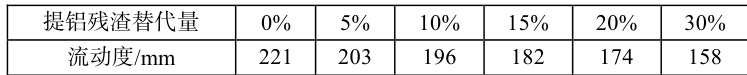 表 1 不同掺量提铝残渣胶砂流动度检测结果