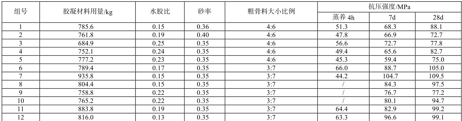 3.水胶比过低( ⩽0.13 )会因水化不充分限制强度发展,需通过硅灰等活性掺合料的后期反应补偿;骨料表面洁净度与级配优化对界面过渡区强化至关重要。