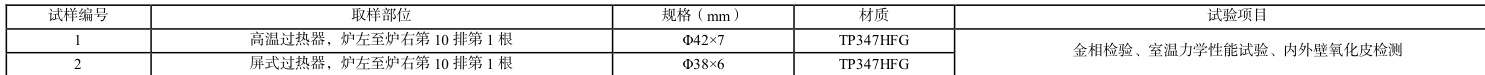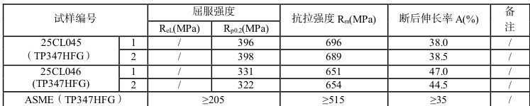 (2)炉左至炉右第10 排第1 根屏式过热器管室温拉伸性能值符合标准要求;金相组织未见异常,内外壁氧化皮厚度符合标准要求。