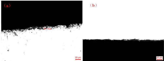 图4 2 号试样氧化皮:(a)内壁氧化皮 (b)外壁氧化皮