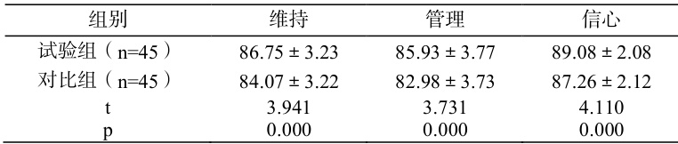 表 1:自我护理指数评估( ∇X±∇S ,分)