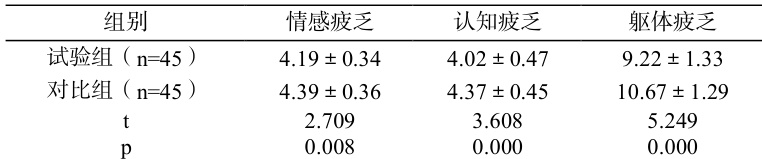表 2:癌因性疲乏程度评估( X±s ,分)