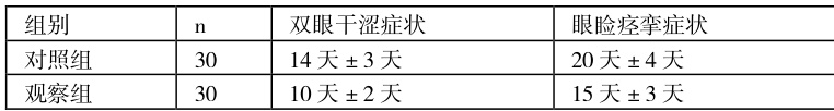 1.4.2 临床症状消失时间,记录双眼干涩、眼睑痉挛等症状消失时间。