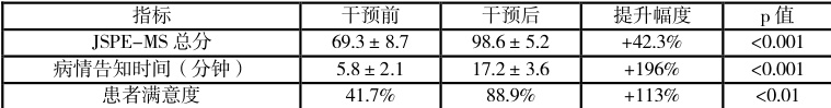 JSPE-MS 总分:从干预前 69.3 分提升至 98.6 分( +42.3% , p<0.001 ),结合 JSE-HP 总分(