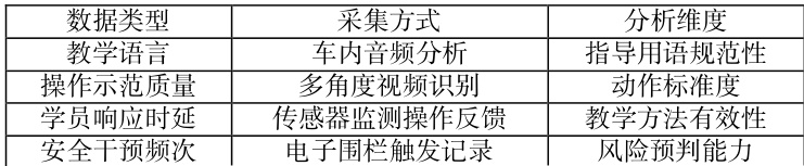 建立多源数据采集系统,通过车载传感器采集操作数据,双路摄像头记录教学行为,麦克风阵列获取语音指令。关键数据维度包括:使用语音识别和情感分析技术评估教学语言规范性;通过动作捕捉技术分析操作示范质量;利用方向盘扭矩传感器测量学员响应时延评估教学方法有效性;基于电子围栏系统日志分析安全干预频次判断风险预判能力。淄博试点部署 200 套智能终端后,建立 32 项教学行为量化指标,使教学标准化率提升至 89% 。