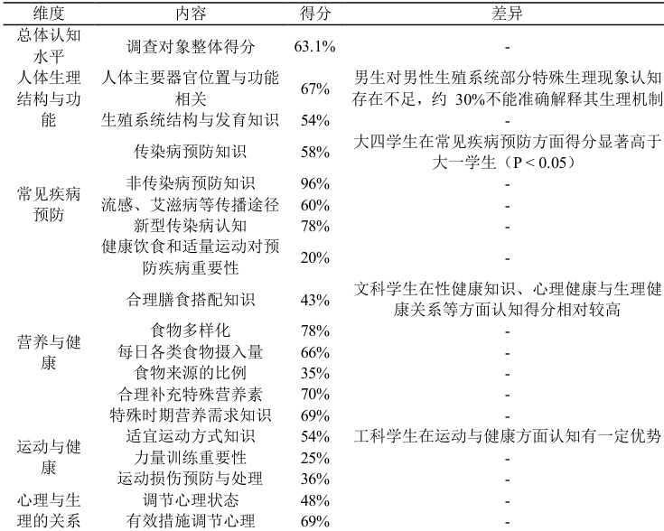 调查显示,及周边地区青少年和青年的生理健康认知处于中等水平,在各维度认知上存在不同程度的不足。
