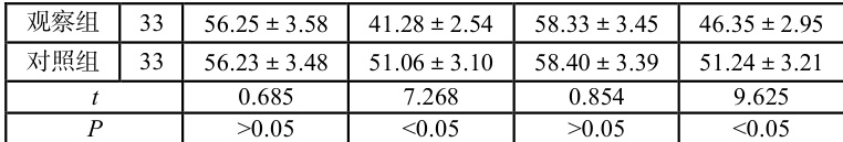 SAS、SDS 评分:观察组降低程度更高( P<0.05 ),见表 1。