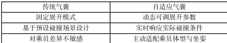 表 1:自适应安全气囊与传统安全气囊之间存在不同