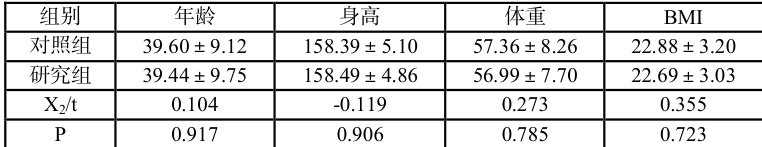 注:两组年龄、身高、体重和 BMI 差异不具有统计学意义, P>0.05 ,支持进行对比试验。