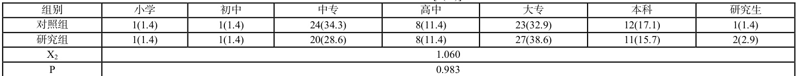 注:两组进行学历卡方检验(Chi-SquareTest),差异不显著,