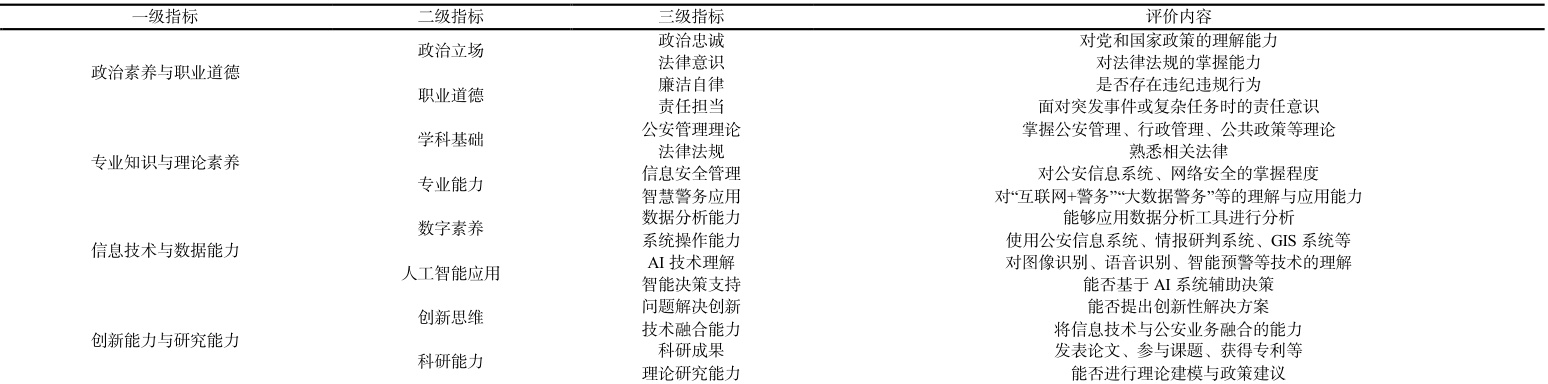 表 2 信息时代公安管理学人才评价指标体系