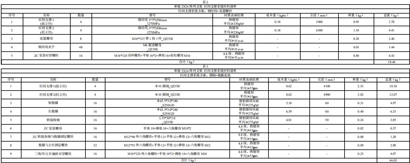 以下为按两个不同布置方案所需的材料清单对比情况,如下表3、表4 所示: