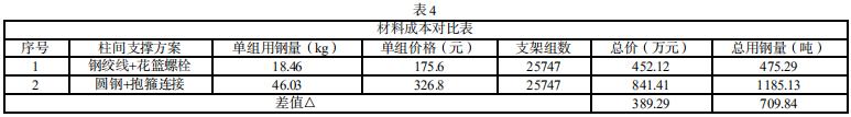 通过对比可知,柱间支撑系统采用“钢绞线+花篮螺栓”的方案用钢量更少,且施工工艺更为简单。