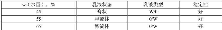 为了弄清水量对乳化蜡产品性能的影响,试验过程中固定其他原料的种类和用量,仅通过逐步改变水的配方占比,来观察其对乳化蜡产品外观和稳定性的具体作用。相关考察结果如表 4 所示。