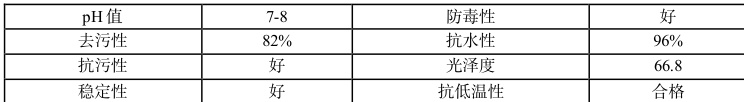 当乳化温度控制在85℃、乳化时间为40 分钟、乳化水量占比 65% 、搅拌速率保持在 700-1000m/min 时,以此工艺制得的乳化蜡为半透明白色乳液,pH 值呈中性,去污与抗污性能良好。将其在恒温条件下存放 60 天,未出现分层情况,贮存稳定性表现优异,详细性能参数如表 6 所示。