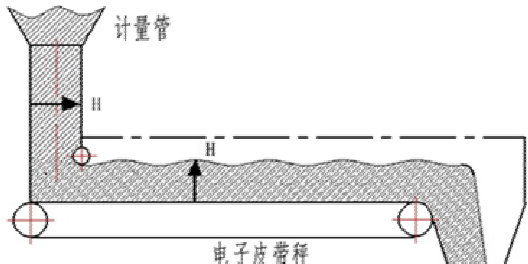 由于该型号电子皮带秤为恒流量控制型电子秤,其皮带表面的物料高度由工艺设定流量和前端计量管厚度 H 控制,经查勘现场已经无调整空间。只能通过调整皮带输送机速度和电子秤皮带秤下料口物料厚度来解决速度匹配问题,从而达到均匀流量的目标。