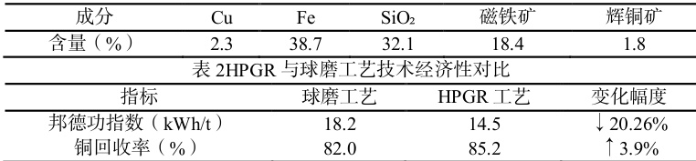-紫金山低品位铜矿:HPGR 终粉磨使铜回收率提升 5.61% ,能耗降低14.86% 。
