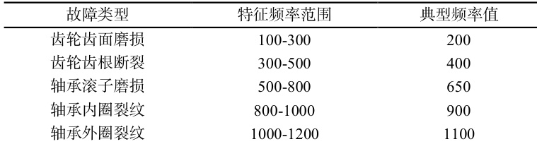 传动系统中的齿轮和轴承是易出现故障的部件,通过对振动信号的分析,发现不同故障类型对应不同的特征频率,相关数据如表 2 所示。