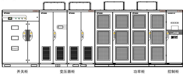 将电网侧电压引入变频器,变频器输出通过高压真空开关或隔离开关到电机;配有多种规格的工频旁路柜供用户选择,标准配置为手动旁路柜,用户可以执行工频旁路操作。