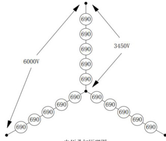 SBH 系列高压变频器中的输入隔离变压器为干式多副边移相变压器,其电气原理如下: