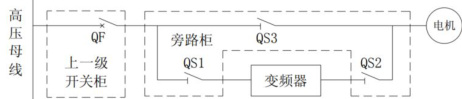 QS1 断开、QS2 断开、QS3 闭合时,电机可由QF 直接启停并进行保护,变频器可完全和电网脱离,便于维护与检修。
