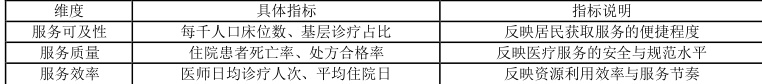 从服务可及性、服务质量、服务效率三个维度选取 6 项指标,通过主成分分析构建综合得分(见表 1)。