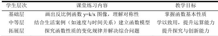 表1 反比例函数课堂差异化练习设计