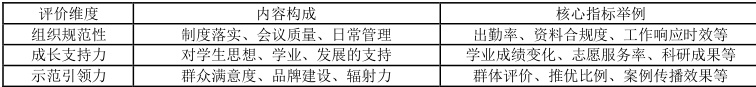 在“三全育人”理念引导下,学生党支部的评价不应停留在制度执行和材料规范层面,更应体现对学生发展的促进效果。构建以“组织规范性、成长支持力、示范引领力”为核心的三维评价模型,有助于科学反映支部的实际育人贡献。评价过程中应注重过程数据的积累和动态调整,强化正向激励功能,推动学生党员在思想引领、实践成长和群众服务中发挥更大作用。