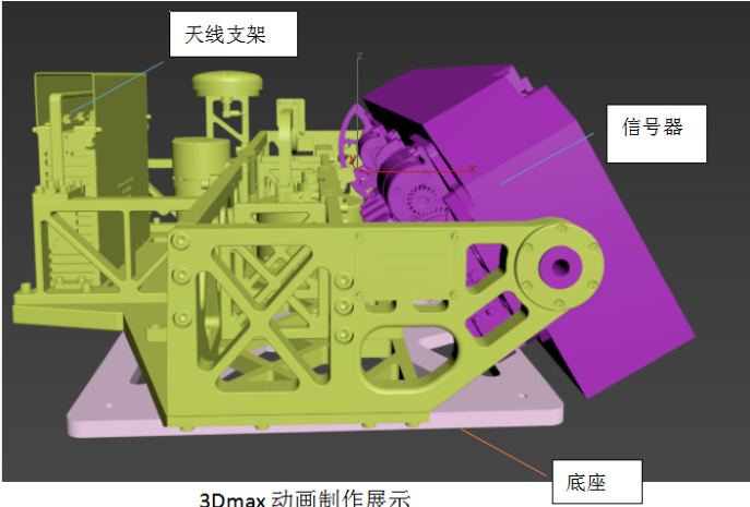 第四步:制作天线支架和信号器转动的动画,可从多个视图进行观察转动情况