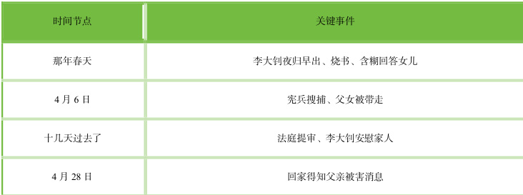 《十六年前的回忆》合乎回忆录基本模式,以 1927 年出现的“四·六反革命政变”为切入点,采用李星华童年第一人称的口吻来叙述,全面展示李大钊遭遇逮捕、接受审讯到壮烈就义的事迹,文本基调朴素且悲戚,其艺术性在三个层面得以彰显,首先是细节表现鲜活。文章运用时间锚点、行为路径、衣着符码进行实证化描写,例如“身着灰色制服和高帮皮靴的宪兵”的细节,再现矛盾即将激化的局面并进行质感勾勒;即便处于危险当中,李大钊还是面不改色,头发散乱但目光温和,以形象对比凸显精神信念维系的沉着;情感表现内隐深刻,用“躺倒在床上”的动作传达痛苦,不明确表达情感却更有感染力。