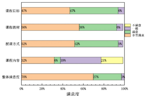 课程团队在学期末,面向本专业学生开展了课程调查问卷,旨在了解学生对《建筑给排水工程》课程现行教学内容与方式的满意程度,从学生角度挖掘当前教学过程中存在的问题,为后续教学改革提供数据支撑。发放问卷 72 人,回收有效问卷66 份,有效回收率 91.7%⨀ 。问卷内容主要围绕课程内容设置、授课方式、考核方式、改进建议四个方面展开。设置单选题10 道,多选题 4 道,主观题 5 道。从整体满意度来看,学生对课程的认可程度较高,在题目“您对《建筑给排水工程》课程的整体满意度如何”中,选择“非常满意”与“满意”的学生比例分别为 70% 和 27% ,显示课程总体教学效果良好。学生对于教学资源(教材与参考资料)的认可度达到 92% ;对课程目标的理解与认同度也高达 94%⨀ 。在考核方面,有近 82% 的学生认为当前的课程考核“合理”或“非常合理”。在题目“您期望有哪些类型的考核方式?”,统计结果表明,选择“作业型考核”和“期中考试 ⋅+, 小组项目”的学生人数最多,分别有41 人和35 人,分别占比 62% 和 53% 。显示出当前学生更倾向于任务驱动的考核体系,而非闭卷考试的期末考试模式。在开放性主观题“您对课程的整体改进建议是什么?”中,共收到61 条有效建议。出现的关键词及频次分别为实践(9 次)、案例(6 次)、调研(5 次)、作业(4 次)、互动(4 次)、考核(3 次),显示学生普遍渴望借助案例、调研、现场学习等形式增强认知体验与能力锻炼。