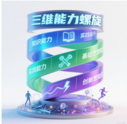 “三维能力螺旋” 模型涵盖知识能力、实践能力和创新能力三个维度。知识能力维度聚焦思政理论知识学习与体系构建;实践能力维度强调将理论应用于实际生活与职业场景;创新能力维度注重培养创新思维与意识。三个维度相互关联、促进,形成螺旋上升发展态势,助力学生思想政治素养与综合能力持续提升。其核心架构如图 1所示: