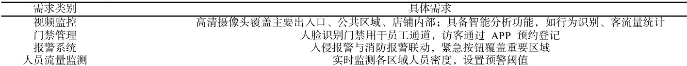 在工程立项初期,准确把握客户需求是项目成功的基石。需与客户充分沟通,了解其对安防系统的功能期望、应用场景特点以及预算限制等。例如,对于一个大型商业广场,除常规的视频监控、门禁管理外,还可能需要针对节假日等高峰时段的人员流量监测与疏导功能,以确保人员安全与运营秩序。通过实地考察、问卷调查、与相关部门研讨等方式,全面收集信息,形成详细的需求分析报告。表 1 展示了某商业广场安防需求分析示例: