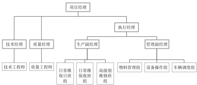 人力资源是长寿命周期维保业务开展的基础,人员的配置是以项目需要为依据,在保质保量完成工作前提下,力争人员配置精准性、合理性和经济性。维保组织架构如图所示: