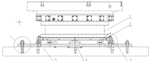 安装液体静压转台一方面需要满足转台的有效固定,另一方面则是需要保证转台与工作台面平行度以及与主轴端面的平行度满足设计需求,以数控精密龙门立式加工中心 XK2320-25 为例 ,其转台与 工作台面平行度 转台与主轴端面的平行度≤0.005mm。(通过技术要求可知,转台安装难点重点在于如何保证转台与主轴端面的平行度,因此下文将重点分析如何保证转台与主轴端面的平行度)同时存在转台需要频繁拆装情况。针对需要频繁拆装转台情况,则要求转台安装快捷以及准确,吊装过程安全与便利。